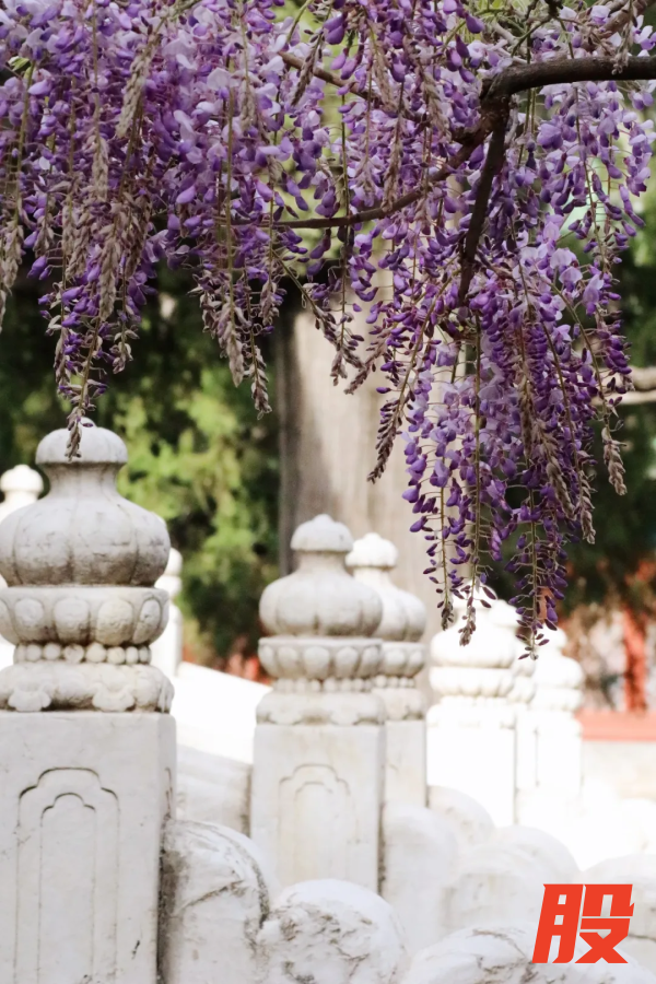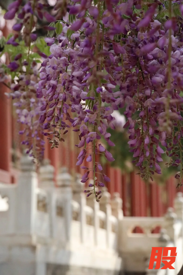 红墙碧瓦间,串串紫色的珍珠挂满枝头。如果您近期打算逛逛恭王府, 别错过这紫色的花瀑~